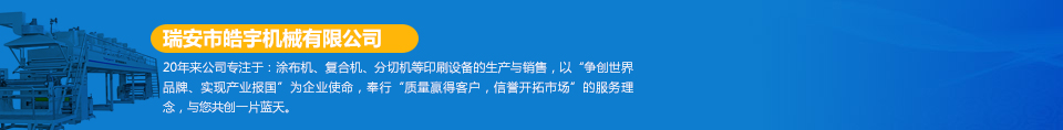 瑞安市皓宇機械有限公司是瑞安一家私營責(zé)任有限公司,注冊資金200萬,員工40余人,是具有獨立法人地位,專業(yè)生產(chǎn)定做各種非標(biāo)準(zhǔn)涂布機、復(fù)合機、印刷機、分切機、壓膜機等機械設(shè)備的制造廠。公司的機器主要用于生產(chǎn)保護膜、膠帶、雙面膠、不干膠、相紙、油畫布、汽車防爆膜、熱轉(zhuǎn)印、燙金膜、離型膜、離型紙、軟包裝印刷、軟包裝復(fù)合、軟包裝分切等各種產(chǎn)品...  [詳細(xì)]